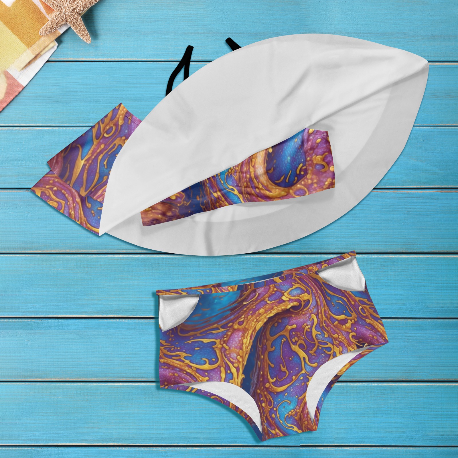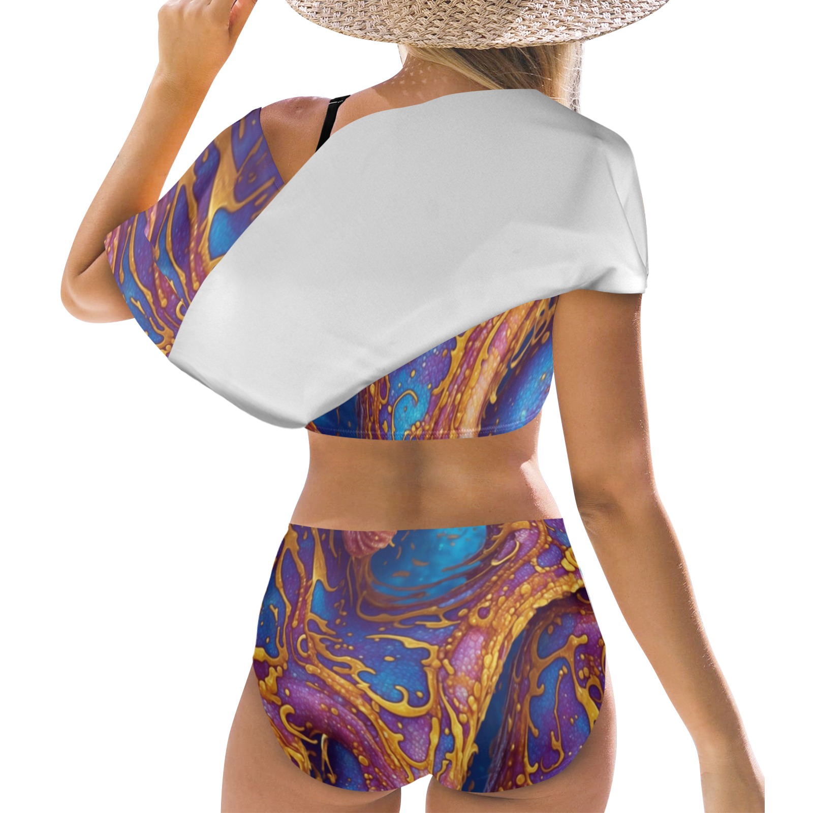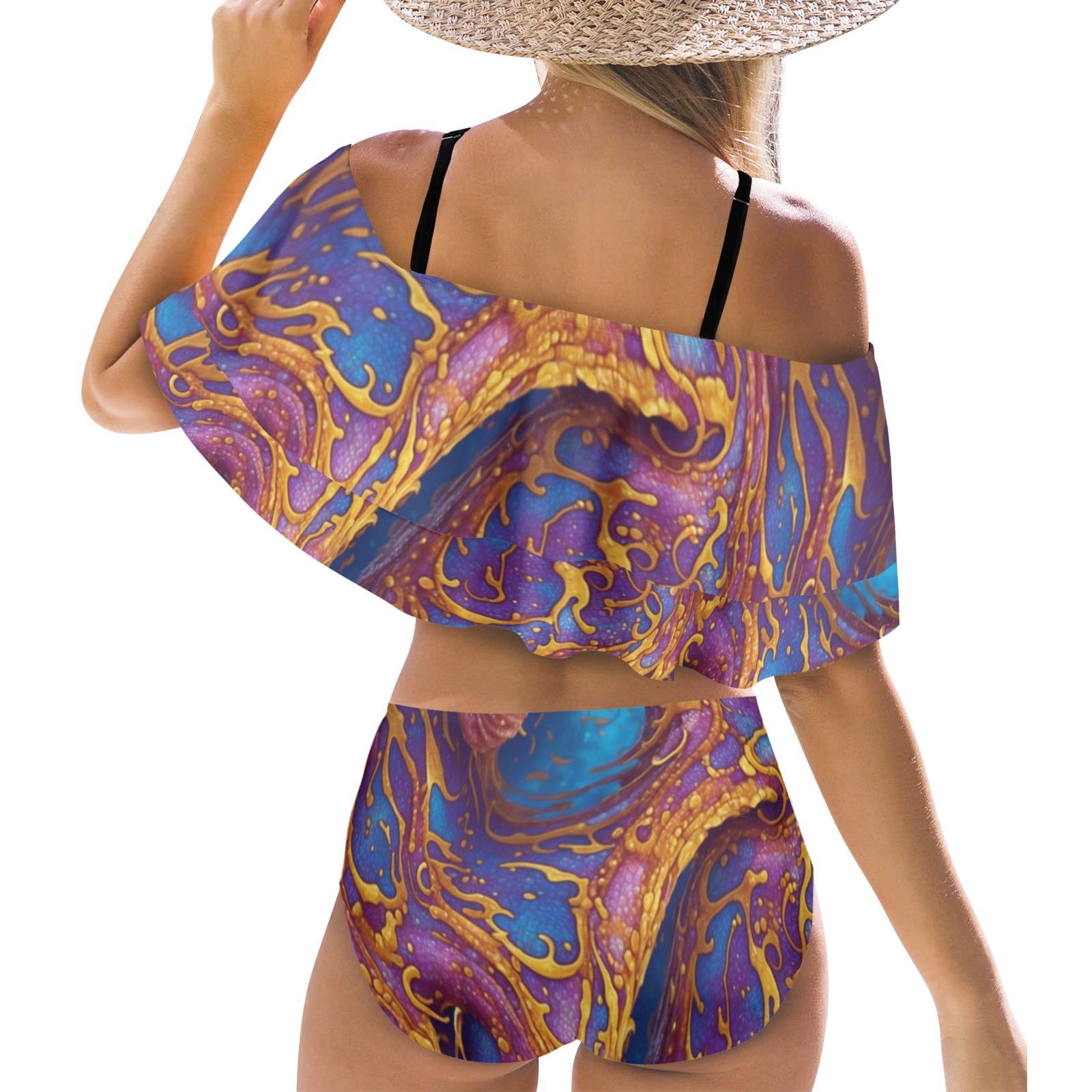 Sandozing Swirl Ruffle Off Shoulder Bikini Swimsuit