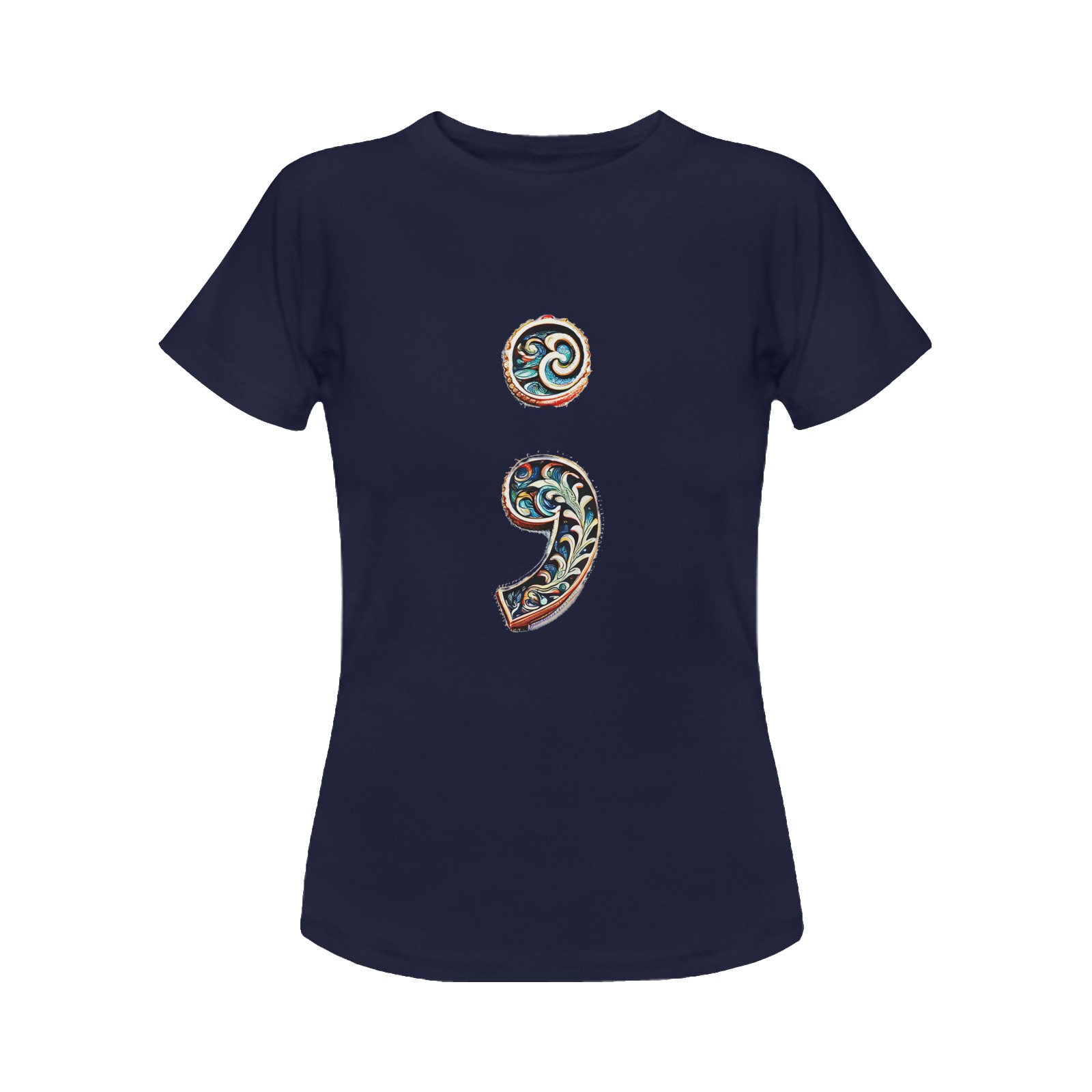 Elevate your message with our Classic Women’s 100% Cotton T-Shirt, graced by a striking semicolon on both front and back. This simple yet profound symbol represents resilience, hope, and solidarity within the mental health community. By wearing this tee, you become an ambassador of awareness, sparking conversations and fostering empathy. Each shirt serves as a powerful tool in raising consciousness, reminding us all that there is strength in unity. Choose from a captivating array of colors to tailor your statement, embracing a visual language that empowers both you and those around you. Together, let’s break barriers and erase stigma, one meaningful conversation at a time.