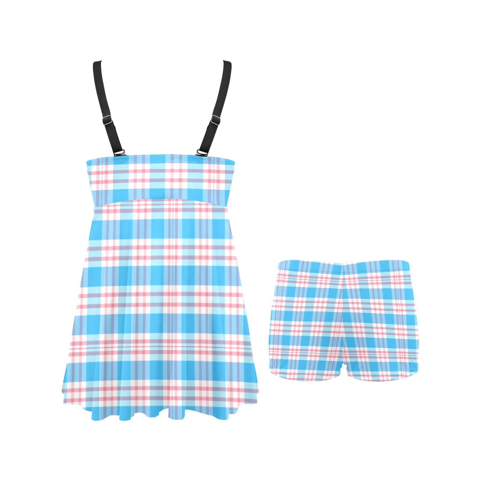 Trans Lazy Wavy Plaid Chest Sexy Pleated Two Piece Swim Dress